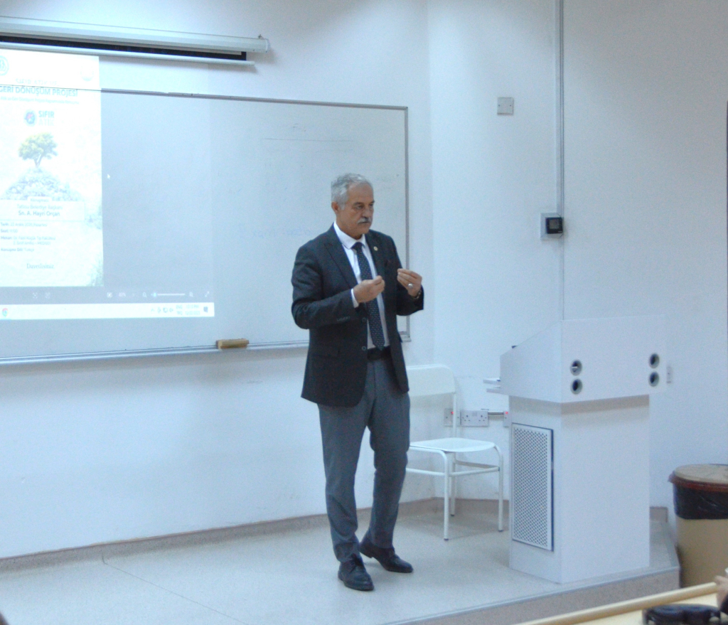Doğu Akdeniz Üniversitesi (DAÜ) Dr. Fazıl Küçük Tıp Fakültesi öğrencilerine yönelik, Tatlısu Belediye Başkanı Hayri Orçan tarafından “Hedef Sıfır Atık” Projesi kapsamında bilgilendirici sunum gerçekleştirildi.