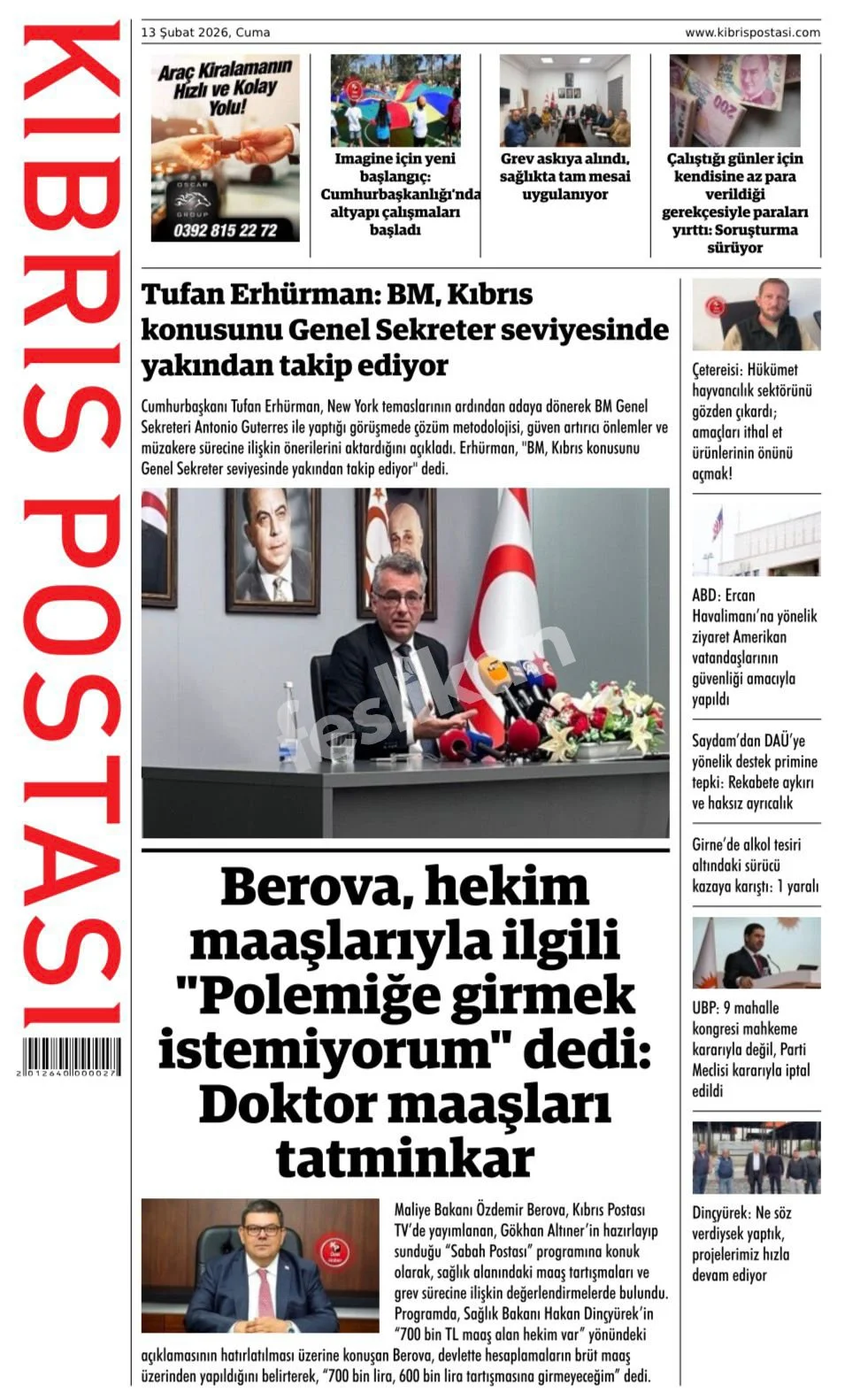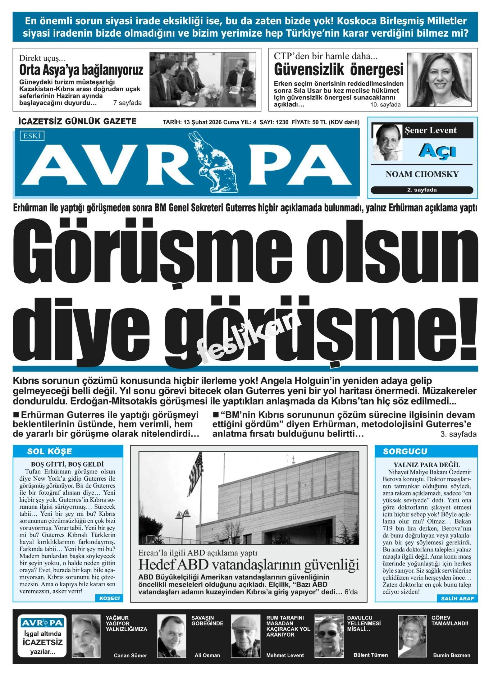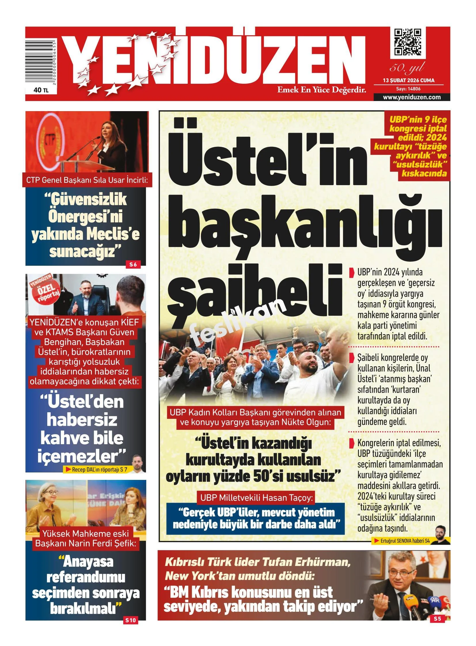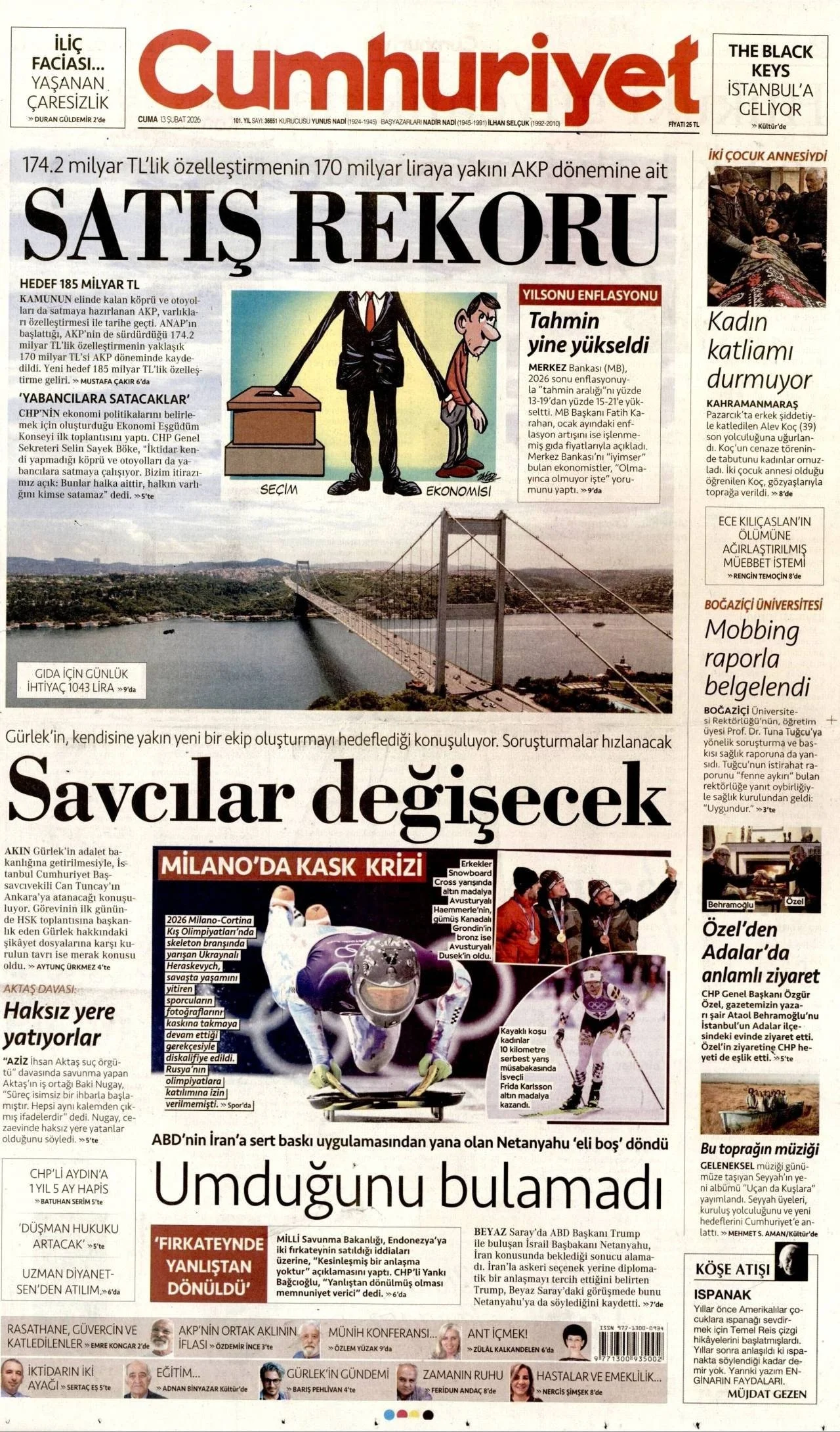 Günün Gazete Manşetleri: 13 Şubat 2026